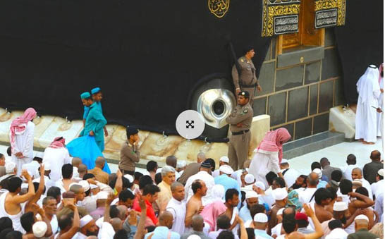 HAJARAL-ASWAD,TOUCH IT WITH YOUR RIGHT HAND OR BOTH HANDS AND SAY “ALLĀHُّٰ“IF YOU MANAGE TO GET CLOSE ENOUGH.IF THERE’S TOO MUCH CONGESTION,AS IS LIKELY TO BE THE CASE,PROCEED WITHOUT SAYING TAKBIR OR